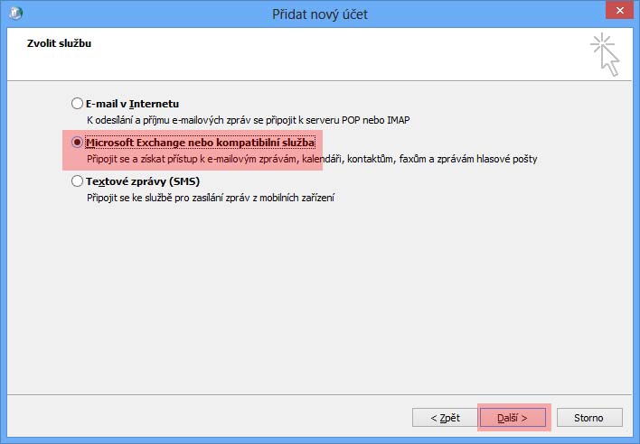 Zde pak zvolíte možnost "Microsoft Exchange nebo kompatibilní služba".